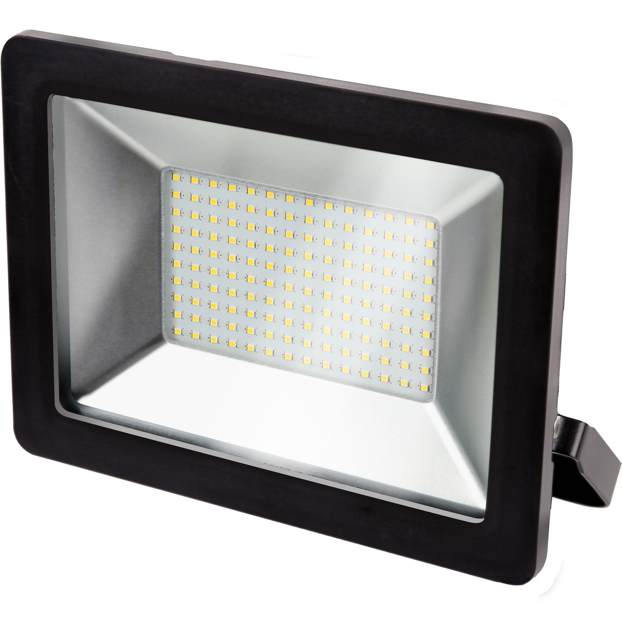 Прожектор светодиодный 100 Вт 9500 лм 6500К 170-264В IP65 черный LED предназначен для равномерного и яркого освещения открытых и полузакрытых площадей. Подходит для установки на фасадах зданий, складах, промышленных цехах, автопарковках, спортивных площадках и возле рекламных щитов. Белый холодный свет (6500 К) обеспечивает хорошую видимость и контрастность, что важно для безопасности и контроля территории.