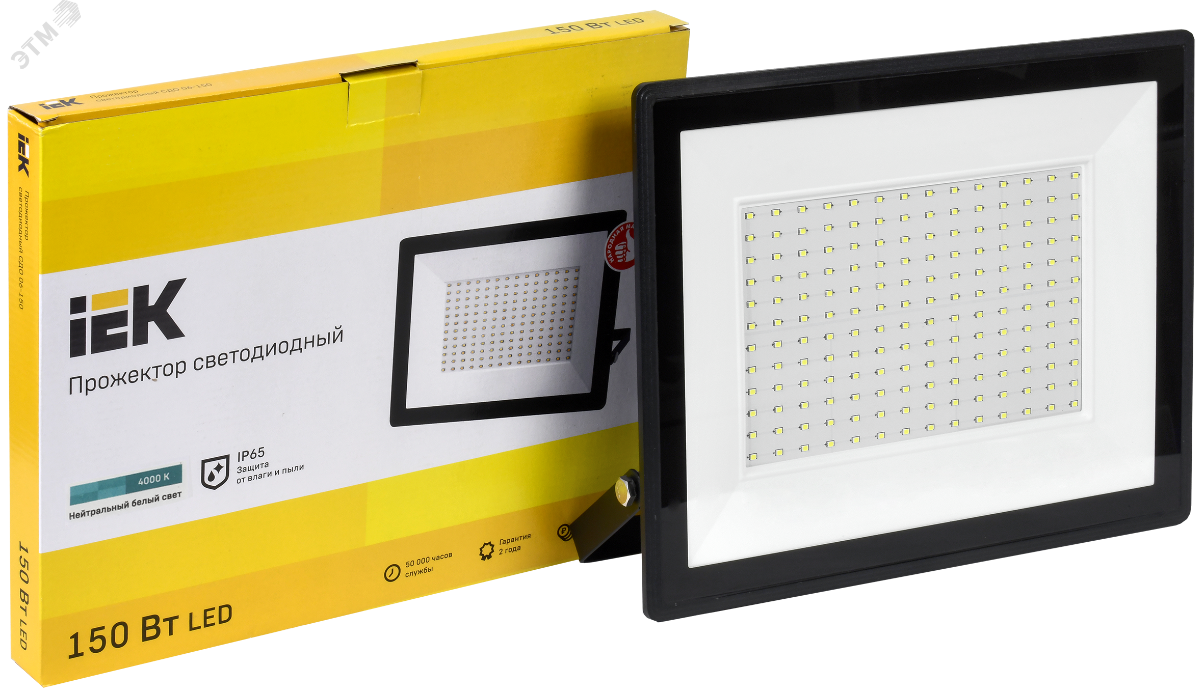 - Мощность: 150 Вт - энергоэффективная замена галогенным прожекторам до 500 Вт.