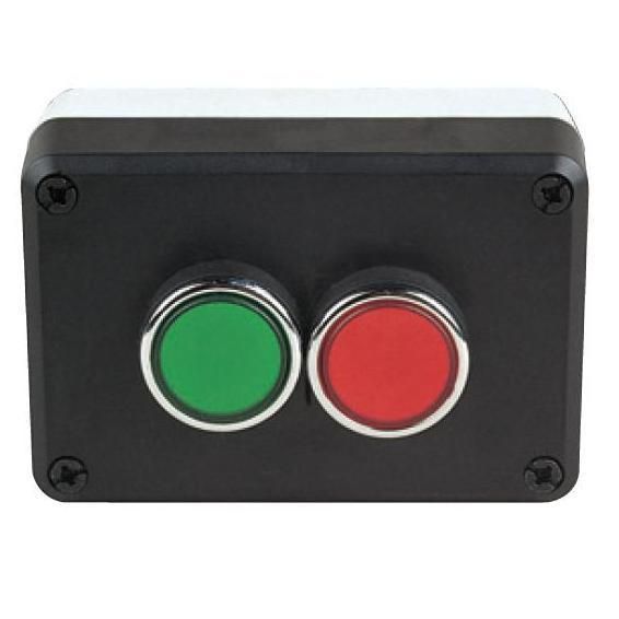 - Количество кнопок: 2 - зелёная (1НО - нормально замкнутая), красная (1НЗ - нормально разомкнутая)