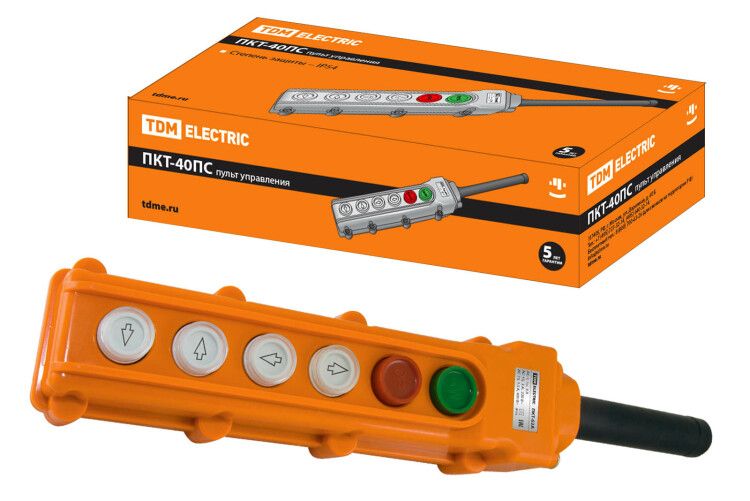 Пульт управления ПКТ-40ПС от SQ0706-0008 TDM ELECTRIC - это надежное устройство, предназначенное для коммутации электрических цепей управления переменным и постоянным напряжением. Он оснащен кнопками Пуск с фиксацией, Стоп, а также направлениями движения: вверх, вниз, влево и вправо.