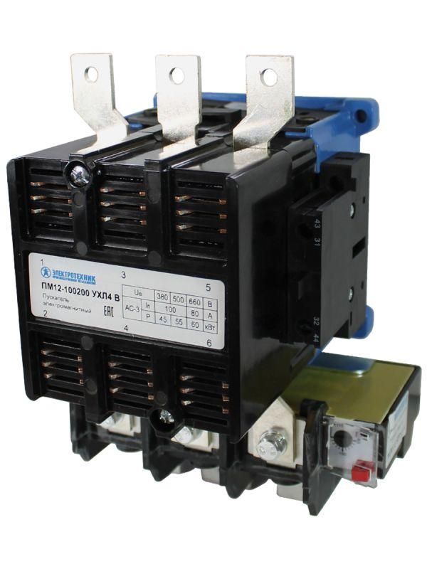 Пускатель ПМ12-100200 УХЛ4 В 220В/50Гц 2з+2р 100А нереверсивный с реле РТТ-325 85-115А IP00 - это промышленный электромагнитный пускатель серии ПМ12 от бренда Электротехник, предназначенный для дистанционного запуска и остановки трёхфазных электродвигателей мощностью до 40 кВт. Комплектуется тепловым реле РТТ-325 для защиты от перегрузки и имеет степень защиты IP00, что требует установки в закрытые электрошкафы.
