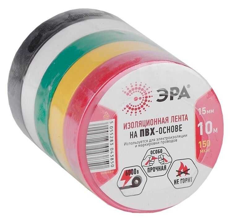 Изолента ПВХ 15мм*10м 5шт = 5 цветов (5/500/16000)только упаковками по штук - C0038781 ЭРА