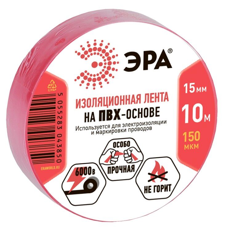 Изолента ПВХ 15 мм х 10 м красная от бренда ЭРА - это надёжный материал для изоляции и маркировки электропроводки в бытовых и промышленных сетях. Артикул c0036556 соответствует ГОСТ 16214-86 и подходит для работы с напряжением до 1000 В.