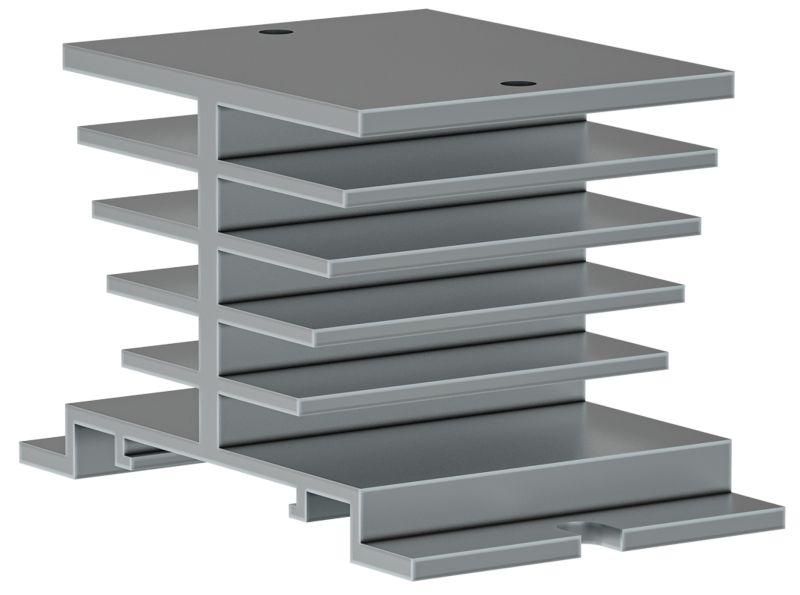 Радиатор для твердотельного реле OSS-2 25А крепится напрямую к корпусу реле через термопасту и болты. Установка обязательна при использовании реле на максимальный ток 25 А. Для надежного контакта поверхность реле и радиатора должны быть чистыми и ровными. Перед монтажом нанесите тонкий слой термопасты - это снижает тепловое сопротивление между деталями. Крепёжные отверстия соответствуют стандартному расположению выводов реле OSS-2 25А.