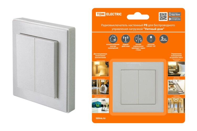 Радиовыключатель настенный РВ2 (2 клав.) для беспроводного управления нагрузкой "Уютный дом" - удобное решение для дистанционного управления освещением и электроприборами. Он позволяет включать и отключать световые и электроприборы, такие как торшеры, настольные лампы, электрочайники, электрообогреватели, из любого места в радиусе до 30 метров.