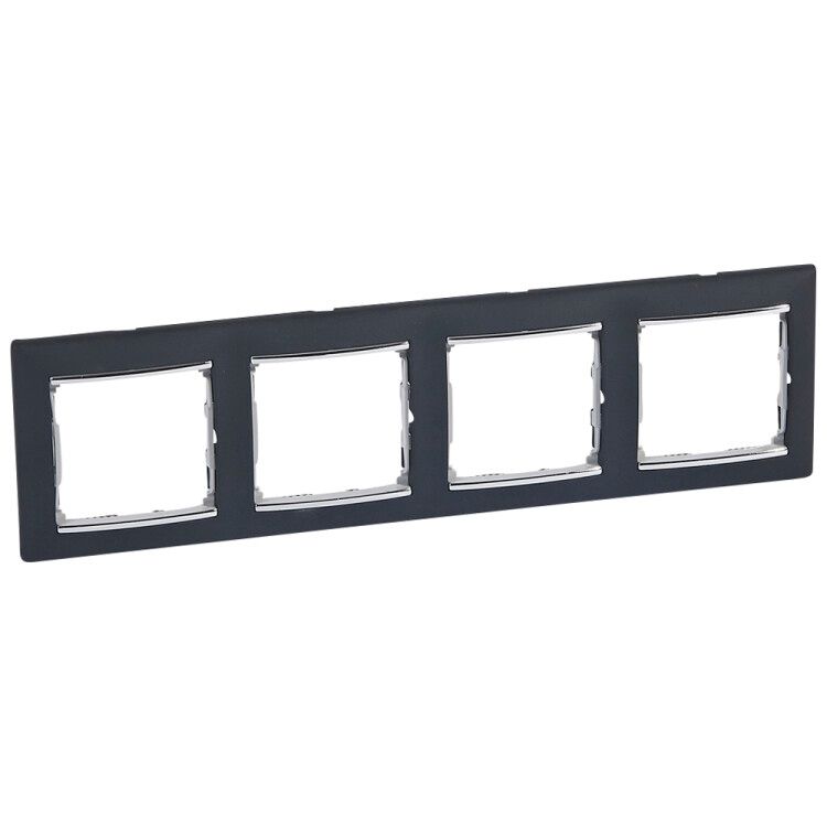 Рамка 4-постовая горизонтальная Ноктюрн/серебро от Legrand Euro - элемент декора и фиксации для четырёх модульных устройств в серии Valena. Подходит для внутренней установки в жилых и офисных помещениях, обеспечивает аккуратный вид и надёжную фиксацию за счёт скрытой системы крепления.