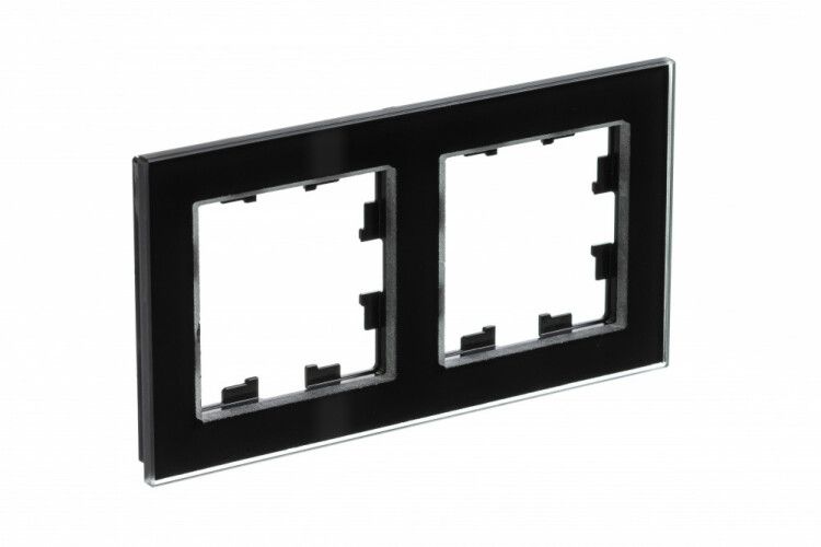 Рамка декоративная 2-постовая, стекло черное, SE предназначена для маскировки и оформления электроустановочных устройств - кнопок, переключателей, розеток и других элементов системы управления. Её используют там, где важна эстетика: в квартирах, отелях, офисах, ресторанах. Черный матовый стеклянный корпус позволяет визуально «растворить» рамку в современном дизайне, делая акцент на самих устройствах внутри.
