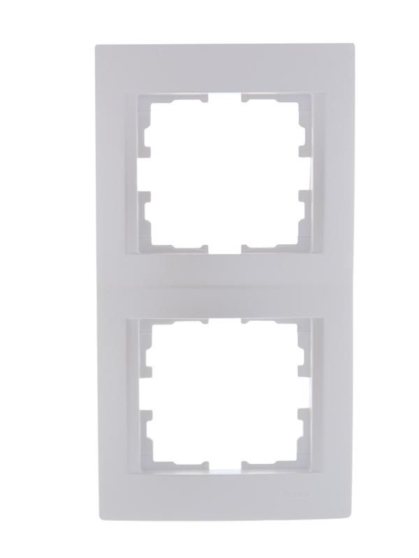 - Рамка 2-постовая вертикальная жемчужно-белый перламутр лучше всего сочетается с белыми или серебристыми выключателями из серии KARINA