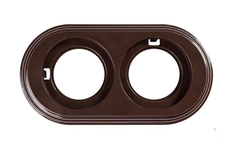 Рамка 2-постовая, пластик, цвет коричневый предназначена для маскировки монтажной коробки и удержания электроустановочных изделий - например, двойного выключателя, розетки с заземлением или комбинации из двух однополюсных устройств. Применяется в жилых домах, квартирах, офисах, гостиницах. Не используется на улице, в сырых помещениях или местах с высокой запылённостью.
