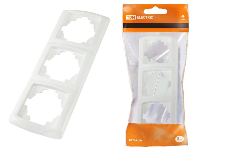 Рамка 3-х постовая вертикальная белая "Онега" | SQ1805-0028 TDM