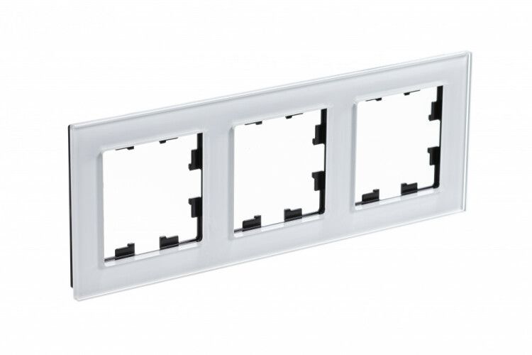 Рамка декоративная 3-постовая, стекло белое предназначена для декоративного оформления трёх установленных в стену устройств - например, выключателей, розеток или кнопок управления. Используется в жилых, офисных и общественных помещениях, где важна минималистичная эстетика. Прозрачная белая стеклянная поверхность позволяет сохранить вид внутренних компонентов, одновременно защищая их от механических воздействий.