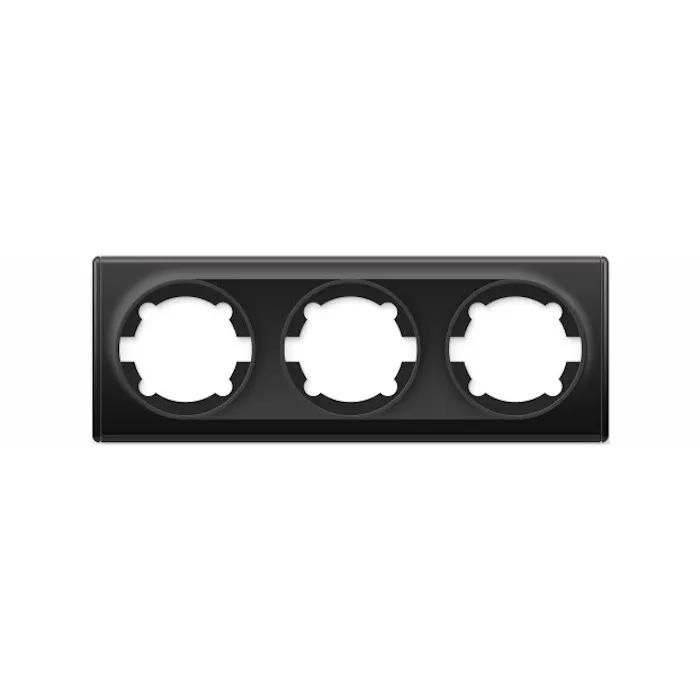 Рамка декоративная 3-местная черная используется для завершения внешнего вида установочных коробок в бытовых и коммерческих помещениях. Подходит для монтажа на стену в местах, где требуется размещение трёх модульных устройств - например, двух выключателей и одной розетки. Применяется в жилых домах, офисах, гостиницах, общественных зонах. Не предназначена для открытой уличной установки.