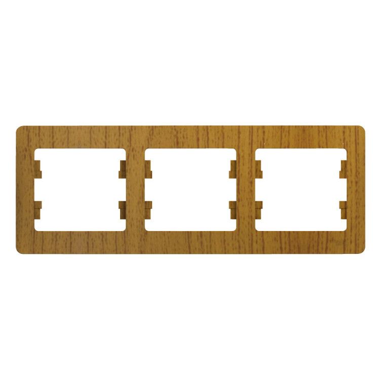 Рамка декоративная 3-местная горизонтальная дерево дуб применяется в паре с: - двумя выключателями и одной розеткой; - тремя кнопками управления освещением; - терморегулятором и двумя розетками в спальне; - группой модулей в холле квартиры или номере отеля. Подходит для проектов, где нужна единая цветовая гамма и минимализм.