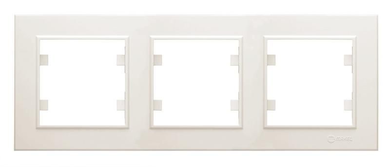Рамка декоративная горизонтальная 3-местная кремовая от Makel (артикул 56010703) предназначена для маскировки и эстетического оформления трёх встроенных электроустановочных изделий - выключателей, розеток или других модулей - в стене. Изделие из термопласта с безвинтовым креплением обеспечивает быстрый монтаж и чистую линию в интерьере.