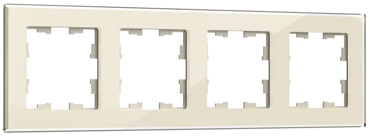 Рамка 4-местная РУ-4-2-БрВа стекло ванильный глянец от бренда IEK - это элегантная декоративная рамка серии BRITE, предназначенная для установки на четыре устройства управления (выключателя, розетки, переключатели) в интерьерах жилых и коммерческих помещений. Изготовлена из закалённого стекла с глянцевой бежевой поверхностью, обеспечивает сочетание прочности, современного дизайна и совместимости со стандартными монтажными коробками.
