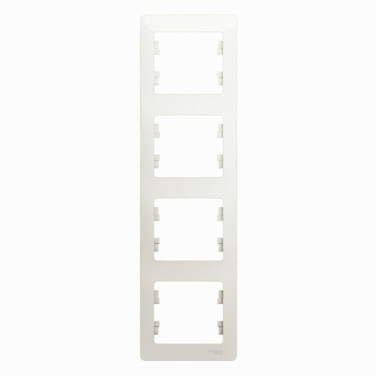 Рамка 4-местная вертикальная перламутр от Systeme Electric (артикул gsl000608) - элемент декора и фиксации для установки четырёх модулей в одной плоскости. Подходит для монтажа выключателей, розеток и других устройств серии GLOSSA в интерьерах с требованием к эстетике и долговечности.
