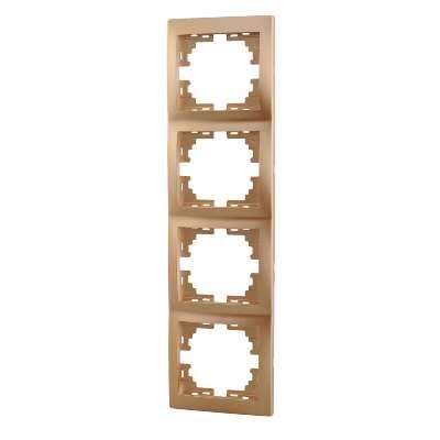 Рамка 4-модульная вертикальная без вставки золотистый металл от бренда LEZARD, артикул 701-1300-154, предназначена для установки на стену в качестве декоративного и функционального элемента для группировки четырёх модулей управления - выключателей, розеток или других устройств серии MIRA.