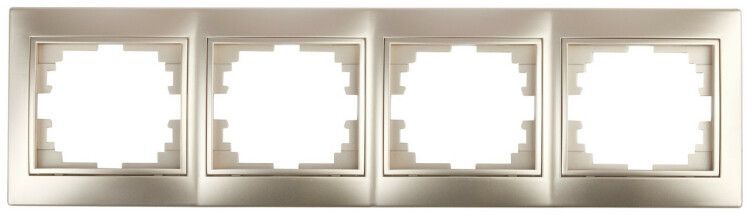 Рамка на 4 поста горизонтальная, СУ, Plano, шампань, серия Intro, 1-504-04 предназначена для маскировки и эстетичного завершения монтажа четырёх модульных устройств - например, выключателей, розеток или переключателей - в одной плоскости. Применяется в системах скрытой электропроводки внутри стен. Подходит для квартир, домов, офисов, где требуется компактное и аккуратное расположение нескольких элементов управления.