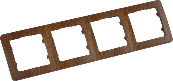 Рамка четырёхместная скрытой установки, цвет дуб используется для закрытия монтажных коробок с установленными электроустановочными изделиями - розетками, выключателями, кнопками. Четыре поста позволяют разместить до четырёх устройств в одной рамке, например: две розетки и два переключателя. Цвет «дуб» имитирует древесную фактуру, что делает её подходящей для интерьеров в классическом, сканди или минималистском стиле. Применяется исключительно в помещениях с внутренней (скрытой) проводкой.