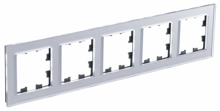 Рамка 5-постовая, органическое стекло, алюминий, универсальная предназначена для маскировки и оформления пяти установленных в стену модулей - розеток, выключателей, кнопок управления или других элементов системы управления. Она не выполняет электрических функций, но обеспечивает целостный внешний вид группы устройств. Применяется в интерьерах квартир, отелей, офисов, медицинских учреждений и общественных зонах, где требуется минимализм и высокая степень визуальной гармонии.