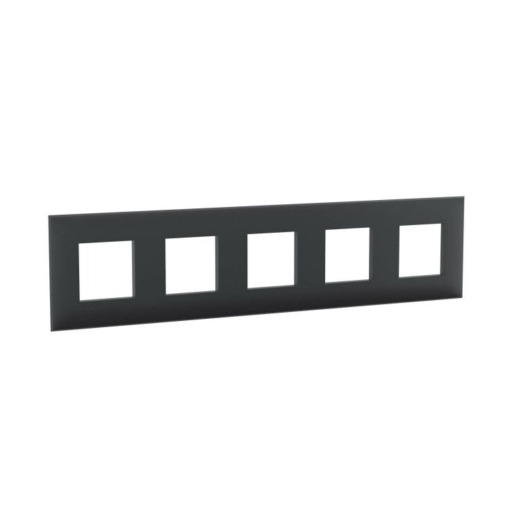 Рамка декоративная для электроустановочных устройств, черный матовый, 10 модулей используется для визуального оформления пяти постов с установленными выключателями, розетками, кнопками и другими ЭУИ. Она не выполняет функциональную роль - её задача - скрыть технологические элементы и создать единый эстетический фон. Применяется там, где важна чистота линий и минимализм: квартиры, отели, коворкинги, административные здания. Особенно эффективна в интерьерах в стилях минимализм, контемпорари, лофт и арт-деко.