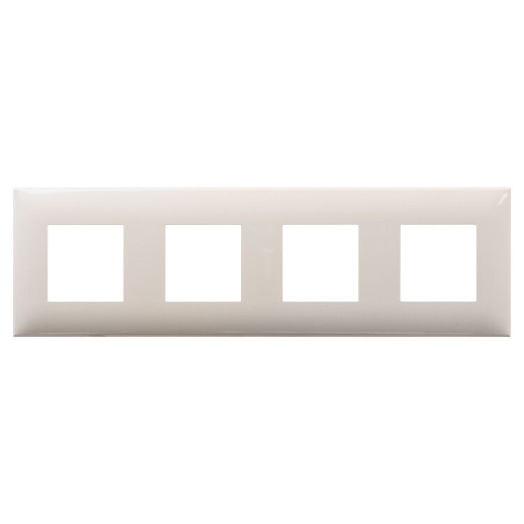 Рамка декоративная 8 модульная, цвет Ванильная дымка, 4 поста используется для маскировки и декорирования установленных в стену электроустановочных изделий - выключателей, розеток, модулей автоматики. Она не выполняет электрических функций, но обеспечивает целостный внешний вид группы устройств. Применяется в квартирах, домах, отелях, офисах, где дизайн интерьера требует минимализма и тонких цветовых решений.