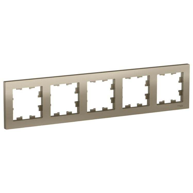 Рамка 5-постовая универсальная шампань SE предназначена для декоративного и функционального оформления пяти одиночных или комбинированных выключателей, розеток, термостатов и других модулей в одной установочной коробке. Подходит для жилых помещений, офисов, отелей и общественных зданий, где важна эстетика и минимализм интерьера. Используется исключительно при скрытом (заподлицо) монтаже.