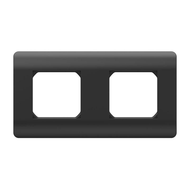 Рамка 2-ая универсальная черная NEW3-E используется для декоративного оформления и фиксации двух электротехнических модулей внутри стены. Подходит для жилых помещений, офисов, общественных зданий - там, где требуется компактное и эстетичное решение для группового монтажа.