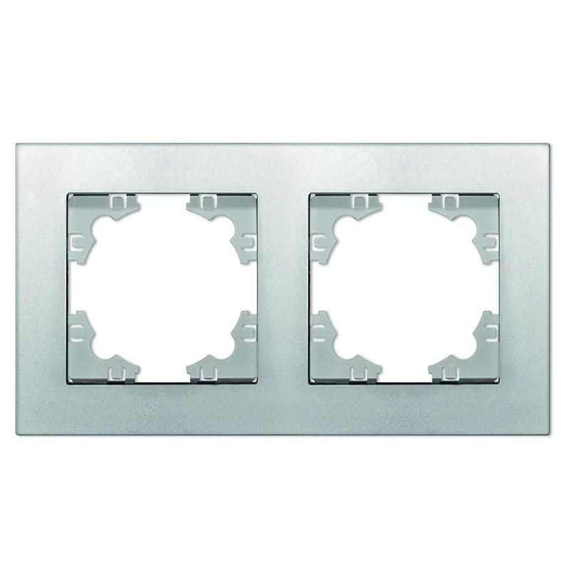 Рамка двухместная горизонтальная серия Афина серебро (еврослот) - A0044-S Союз