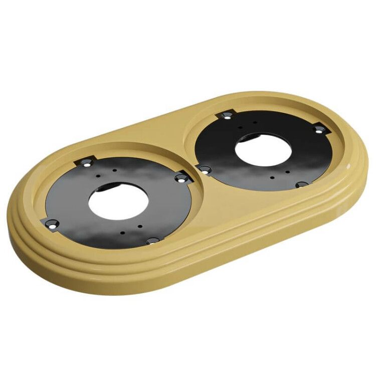 Рамка двухместная пластиковая 163x92x14 мм, цвет песочное золото, серия УСАДЬБА совместима со стандартными монтажными коробками глубиной 50–80 мм, соответствующими ГОСТ 23405. Крепится на шурупы через фланцевые отверстия по периметру. Для монтажа требуется предварительно установленная монтажная коробка и два устройства (розетки/выключатели) с типовым креплением. Размер рамки рассчитан под стандартные модульные элементы шириной 17,5 мм каждый - подходит для комбинаций типа “две розетки” или “розетка + выключатель”.