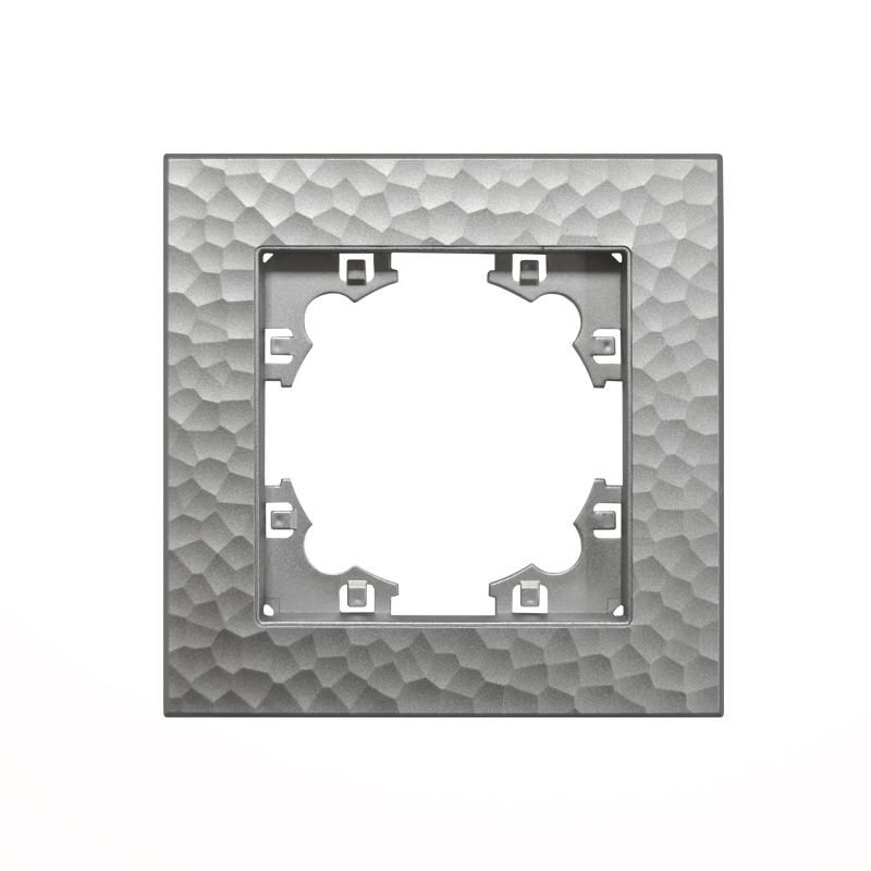 Рамка фактурная 1-постовая серебро (еврослот) UNIVersal - элемент декора и защиты для установки одиночных модулей серии «Афина». Подходит для монтажа в стандартные еврокоробки, сочетается с выключателями, розетками и другими устройствами из этой же серии.