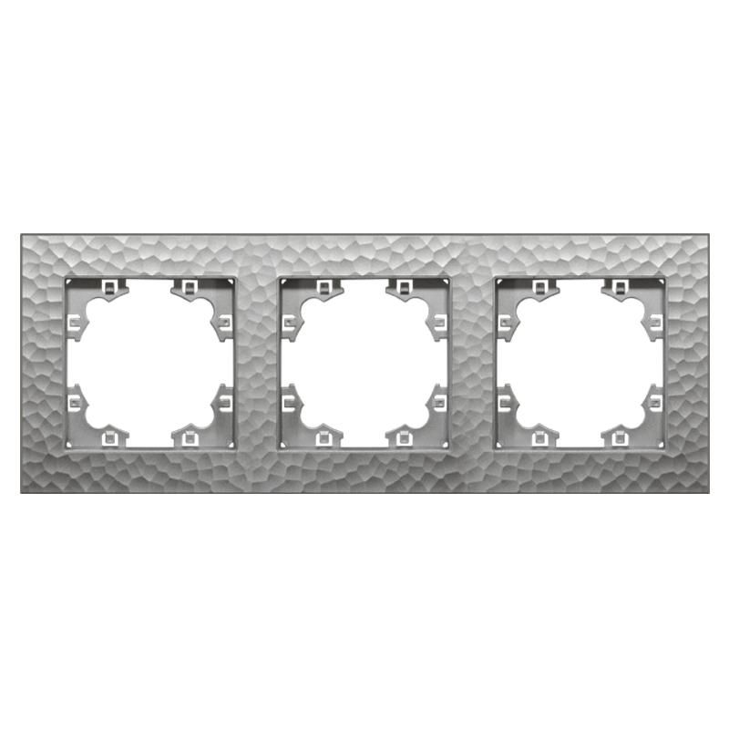 Рамка фактурная 3 поста универсальная UNIVersal Афина серебро (еврослот) - A10045-S Союз