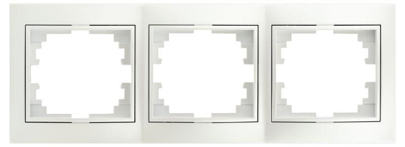 Рамка Plano 1-503-06 на 3 поста горизонтальная, перламутр предназначена для маскировки монтажной коробки и создания единых визуальных границ вокруг розеток и выключателей. Применяется в жилых, офисных и общественных помещениях при внутренней проводке. Подходит для комбинирования с однополюсными, двухполюсными и проходными выключателями, а также обычными и USB-розетками из той же серии Plano.