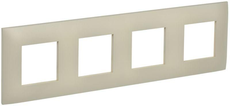 Рамка декоративная 4-местная бежевая предназначена для маскировки и эстетичного оформления четырёх электромонтажных механизмов - например, двух розеток и двух выключателей. Применяется в квартирах, домах, офисах, гостиницах и общественных зданиях. Подходит для интерьеров в классическом, минималистичном или современном стиле благодаря нейтральному бежевому цвету и глянцевому покрытию.