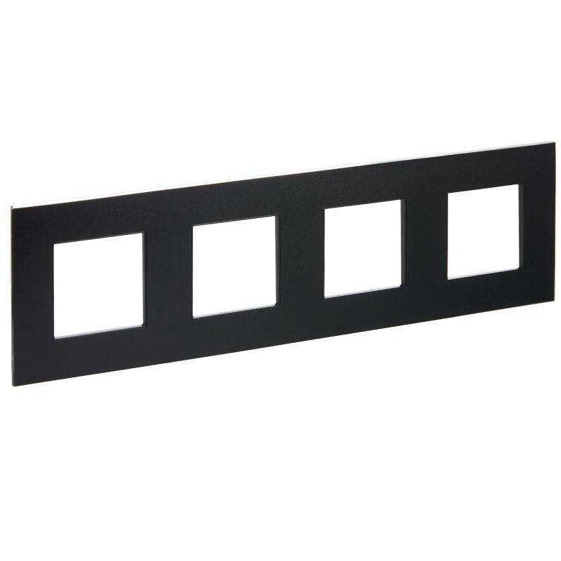 - Рамка 4-местная металлическая черная от IEK (ИЭК), артикул sk-m42-m-k02, хорошо сочетается с белыми или серыми панелями, деревянными элементами и современным минимализмом