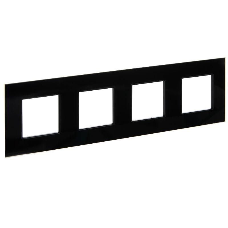 Рамка 4-местная стекло черный используется для маскировки и эстетичного оформления четырёх выключателей, розеток, модулей автоматики или других устройств, установленных в одну группу. Применяется в помещениях с высокими требованиями к дизайну: квартирах, гостиницах, ресторанах, административных зданиях. Подходит как для новых интерьеров, так и для реконструкций.