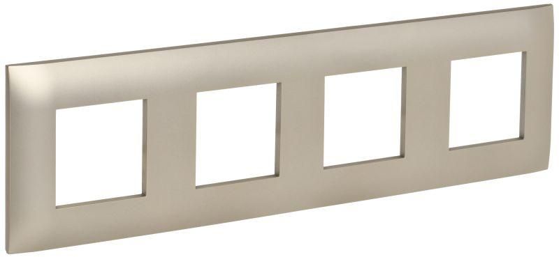 Рамка декоративная 4-местная шампань используется для маскировки и декорирования четырёх стандартных электроустановочных изделий - например, выключателей, розеток, кнопок управления. Подходит для установки в жилых помещениях, офисах, гостиницах и общественных зданиях. Применяется совместно с механизмами формата 45×45 мм, установленными в подрозетниках или кабель-каналах.