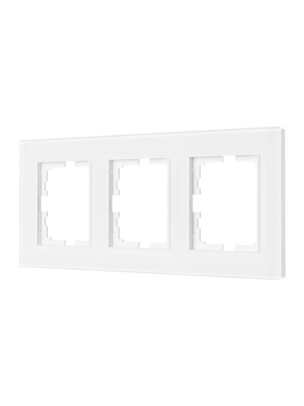 Рамка 3-местная горизонтальная стекло белая от бренда LEZARD, артикул 742-5480-148 - это декоративный элемент для установки на стену, предназначенный для фиксации трёх модульных устройств: выключателей, розеток или других компонентов серии VESNA. Подходит для интерьеров с минималистичным дизайном.