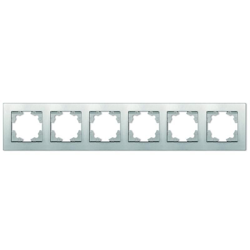 Рамка шестиместная горизонтальная серия Афина серебро (еврослот) - A1043-S Союз