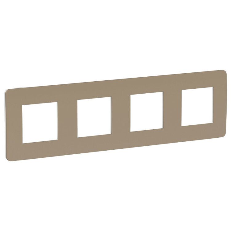 Рамка декоративная 4-постовая песочная/белая UNICA STUDIO - элемент отделки для установочных коробок, обеспечивающий эстетичный и защищённый вид групповых электроустановочных устройств. Бренд Schneider Electric и артикул nu280826 указывают на принадлежность к серийной линейке UNICA NEW, предназначенной для современных жилых и офисных помещений.