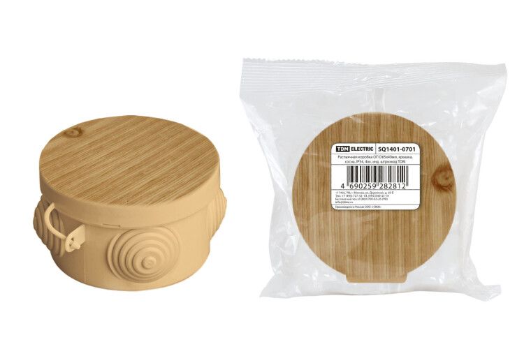 Коробка распределительная о/п D65х40мм, крышка, сосна, IP54, 4вх. инд. штрихкод | SQ1401-0701 TDM