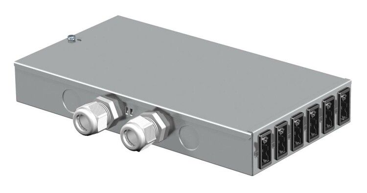 Распределитель энергии UVS (сталь) (UVS-6S6W2) монтируется на DIN-рейку или в шкаф с помощью крепёжных отверстий в корпусе. Кабели ввода заходят сверху или снизу - сечение до 4 мм2. Для подключения нагрузки используются стандартные штекеры GST 18i, которые вставляются в гнёзда на лицевой стороне устройства. Цветовое различение (белые и чёрные разъёмы) позволяет визуально отделить две независимые цепи питания. Установка требует только правильного подбора вводного кабеля и проверки соответствия разъёмов на оборудовании.