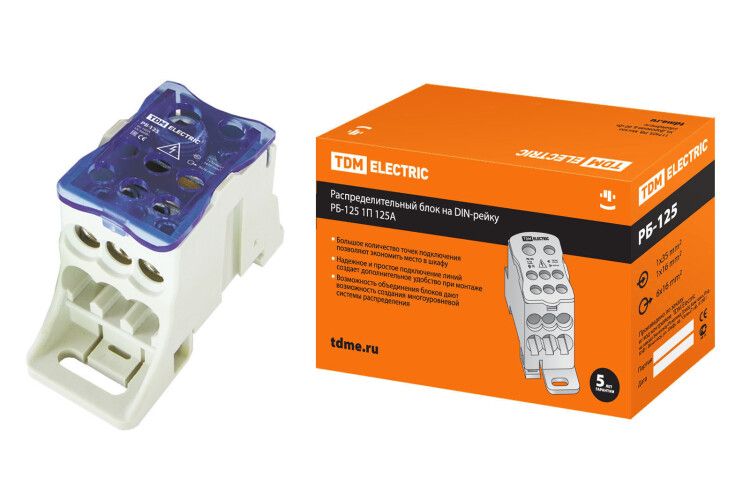 Распределительный блок на DIN-рейку РБ-125 однополюсный 125А (1х35+1x16/6x16) - SQ0823-0002 TDM ELECTRIC является незаменимым инструментом для создания упорядоченных систем распределения в электрощитах и структурированного подключения отводных линий.