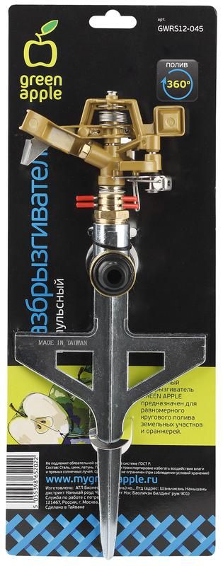 Разбрызгиватель Green Apple GWRS12-045 - это импульсный вращающийся разбрызгиватель с металлическим корпусом, предназначенный для равномерного кругового полива садовых и огородных участков площадью до 340 м². Устройство работает на давлении воды без внешнего питания, подходит для систем автономного орошения.