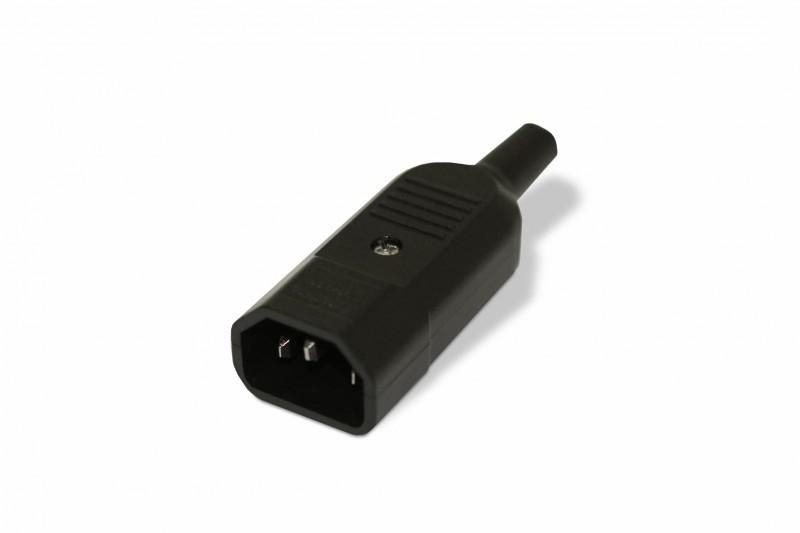 Устанавливается на конце силового кабеля - то есть является «вилкой» с плоскими контактами, которая включается в розетку или в гнездо C13 на оборудовании. Подходит для постоянного подключения, где требуется надежный и безопасный разрыв цепи.