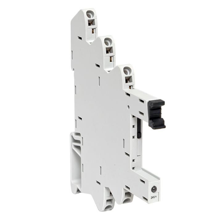 Разъем для реле РM slim 23/1 Push-in совместим исключительно с реле серии PM slim 23/1 от EKF и аналогичными по габаритам моделями. Установка происходит просто: разъем фиксируется на DIN-рейке щелчком, после чего реле вставляется сверху до упора - слышен характерный щелчок фиксации. Для подключения проводов: зачищенный конец вводится в клемму до упора, пружина автоматически зажимает жилу. Отсоединение - нажатием на рычажок клеммы и вытягиванием провода.