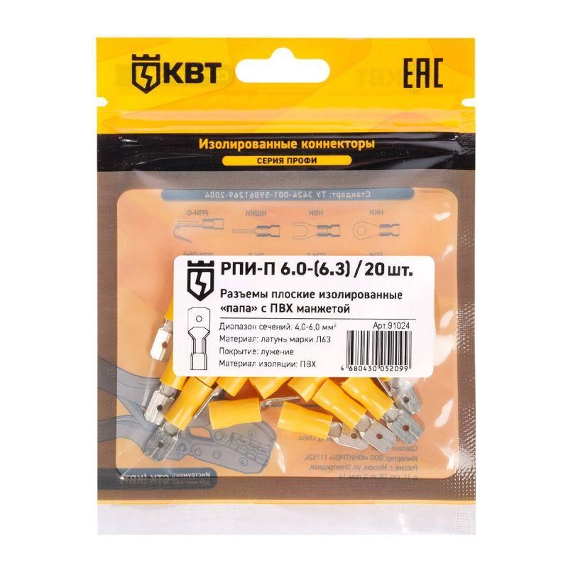 | Разъем кабельный плоский изолированный «папа» РПИ-П 6.0-(6.3) (20 шт) | 91024 | КВТ | 13.03.2026 | 1 уп. 20 шт. | 122,32 ₽ | уп. | от 30 дней |
