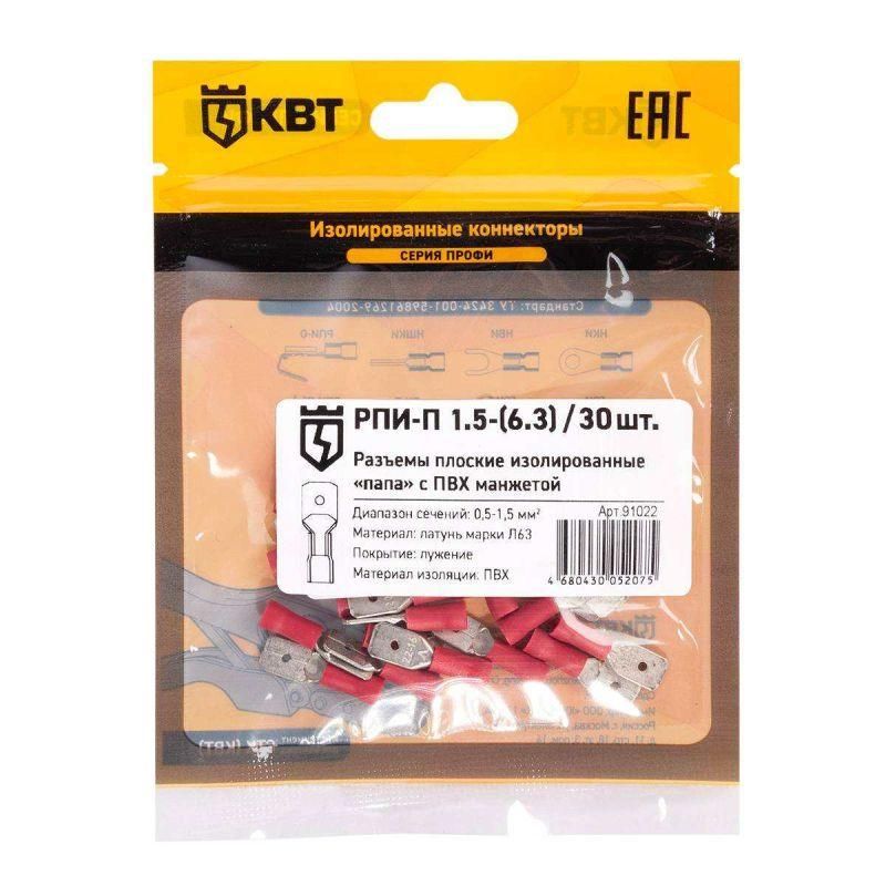 | Разъем кабельный плоский изолированный «папа» РПИ-П 1.5-(6.3) (30 шт) | 91022 | КВТ | 13.03.2026 | 240 уп. 30 шт. | 134,51 ₽ | уп. | от 30 дней |