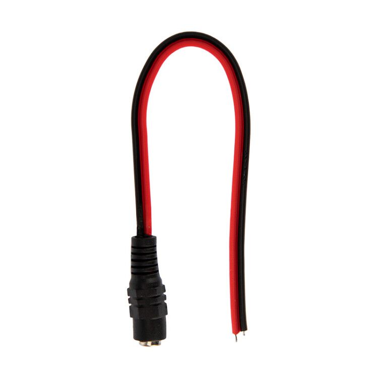 Разъем совместим со всеми стандартными штекерами 2,5×5,5 мм, используемыми в блоках питания для камер, маршрутизаторов, LED-лент и другого оборудования. Монтаж не требует пайки: окончания проводов зачищены и облужены - достаточно подсоединить их к клеммам, кабельным колодкам или через крепления типа “папа-мама”.