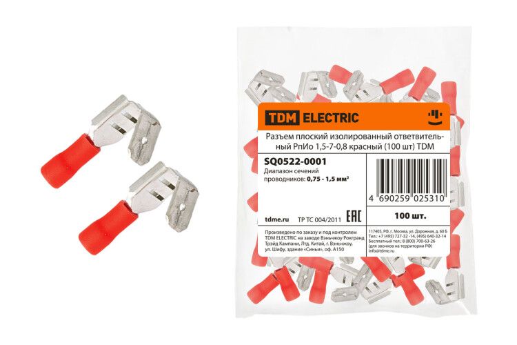| Разъем плоский изолированный ответвительный РпИо 1,5-7-0,8 красный (100 шт) | SQ0522-0001 | TDM | 12.12.2025 | Под заказ | 343,74 ₽ | уп. | от 30 дней |